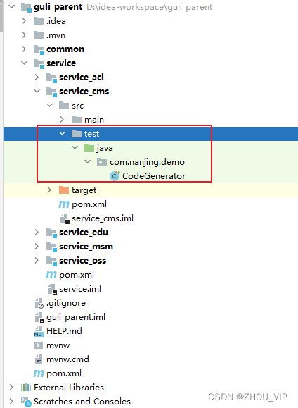 4、test目录下新建com.nanjing.demo文件夹,复制之前用过的代码生成器