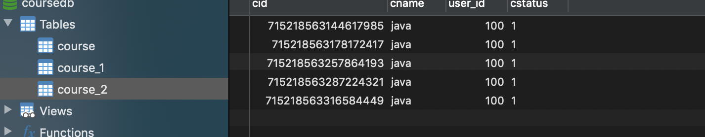 #指定分片策略 约定cid值为偶数添加到course_1表。如果是奇数添加到course_2表。