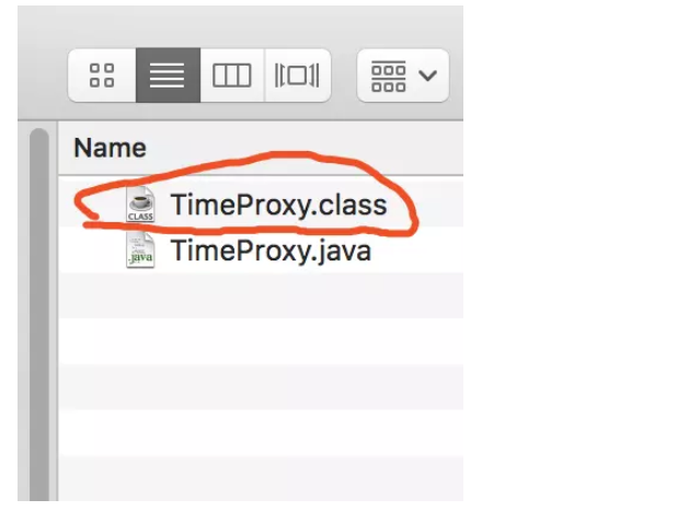 }上面的代码你可能看起来比较吃力,我们直接调用该方法,查看最后生成的源码。在main方法中测试newProxyInstance查看生成的TimeProxy源码: