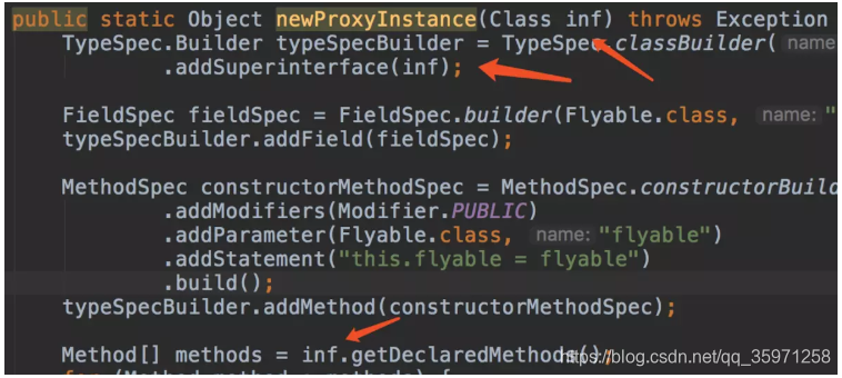 查看Proxy->newProxyInstance()的源码,代理类继承的接口我们是写死的,为了增加灵活性,我们将接口类型作为参数传入: