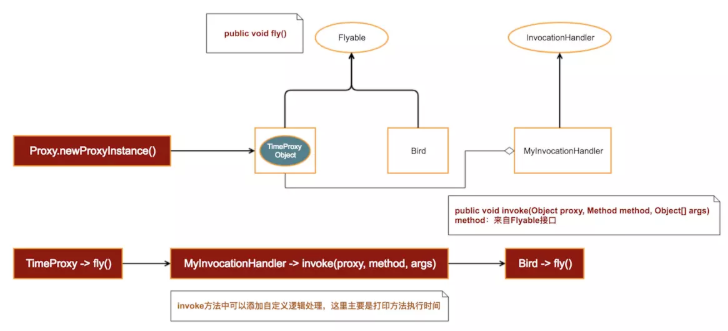 方法执行流:proxy.fly() => handler.invoke()为此,我们需要在Proxy.newProxyInstance()方法中做如下改动: