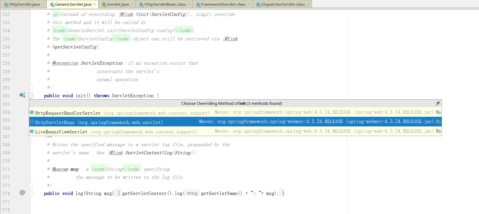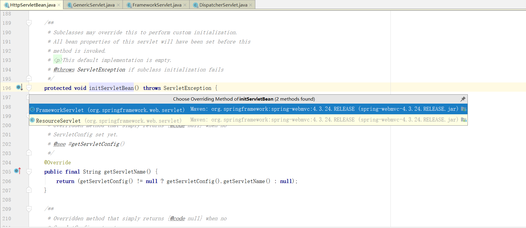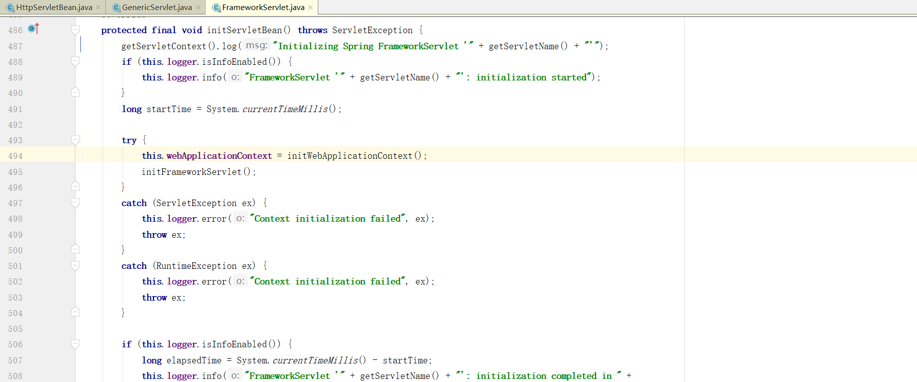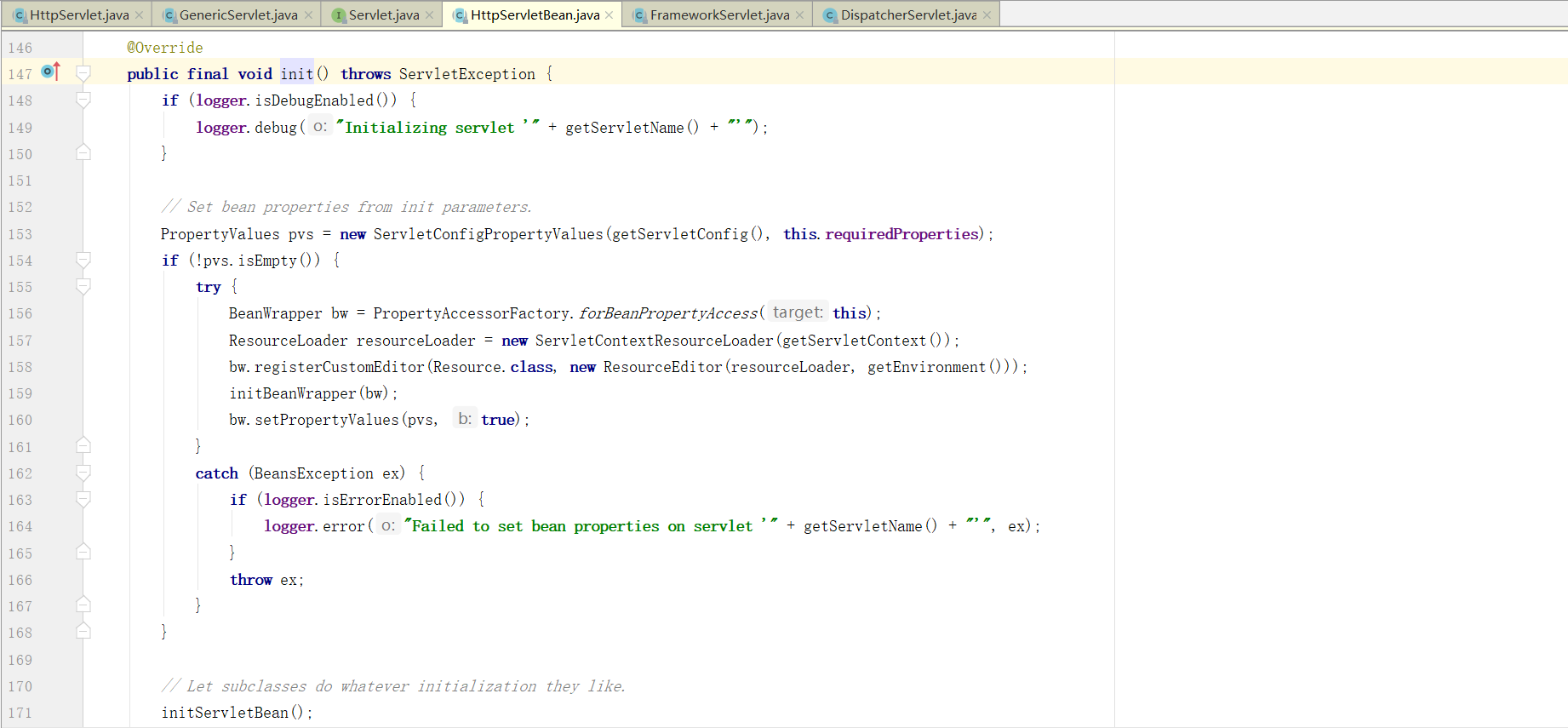 Springmvc也是基于Servlet,所以的入口也是一个Servlet即GenericServlet,框架启动时会调用init方法,进行初始化,它其实是执行的是HttpServletBean的init方法,然后会调用FrameworkServlet的initervletBean,进行SpringWeb容器的初始化