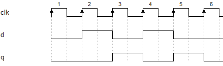 下一个时钟上升沿d的值为1,那么q就输出1,如此类推。
