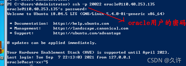 那么ssh命令的格式是为: ssh -p 公网的转发端口 主机C的用户名@公网的ip