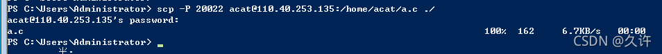 scp -P 公网的转发端口 主机C用户名@公网ip地址:主机C文件路径 主机A的目录