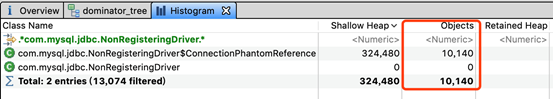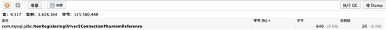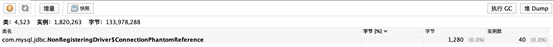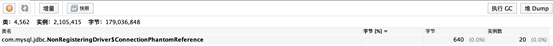 查看对象数量,发现com.mysql.jdbc.NonRegisteringDriver$ConnectionPhantomReference 这个对象堆积了10140 个。