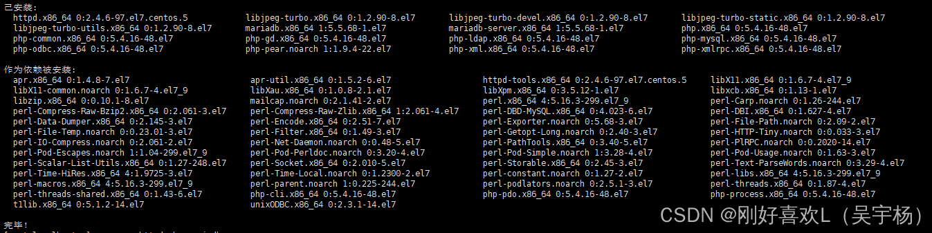 yum install -y httpd mariadb-server mariadb php php-mysql php-gd libjpeg* php-ldap php-odbc php-pear php-xml php-xmlrpc php-mhash