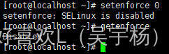 方法二:setenforce 0(这里我已经用了第一种方法永久关闭所以显示这个。注意:不管方法一还是二做完都一定要重启虚拟机才会生效!!!)