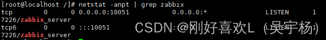 4.3 监听在10051端口上,如果没监听成功,可重启zabbix-server服务试试