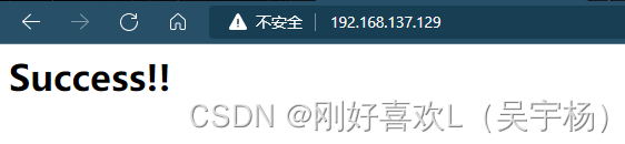 编辑完后保存并退出,用虚拟机IP地址在浏览器打开,显示success!!表示成功