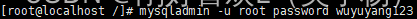 mysqladmin -u root password wuyuyang123 #设置数据库root密码(密码自行定义)