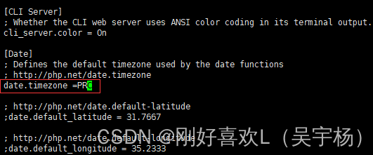 将;date.timezone = 修改为date.timezone = PRC 去掉前面的注释保存并退出