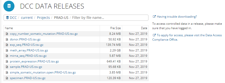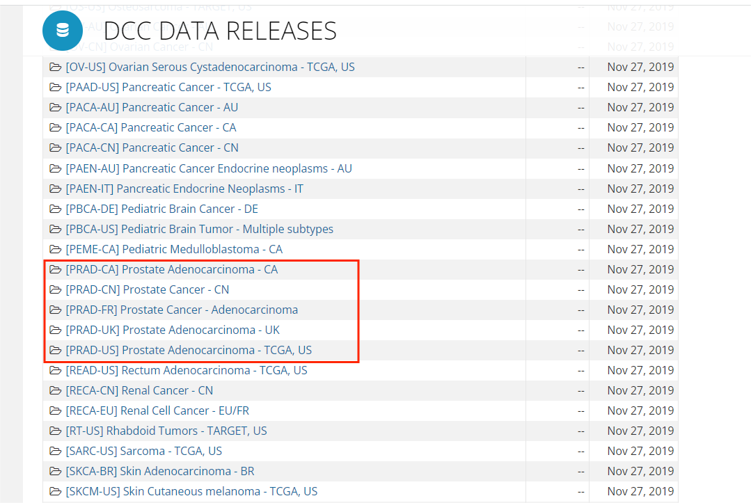 - 前列腺癌PRAD的数据集有图中所示的5个,其中有一个来自TCGA