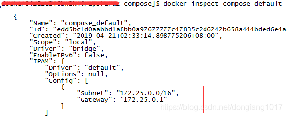 创建容器后 会自动给容器使用compose_default 网络 ,所有容器是内网互通的