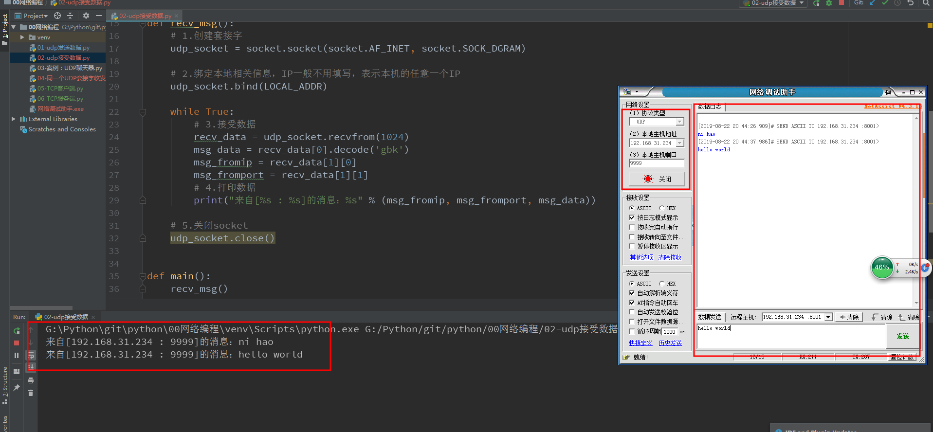 udp_socket.sendto(msg.encode('utf-8'), (DES_IP, DES_PORT))
