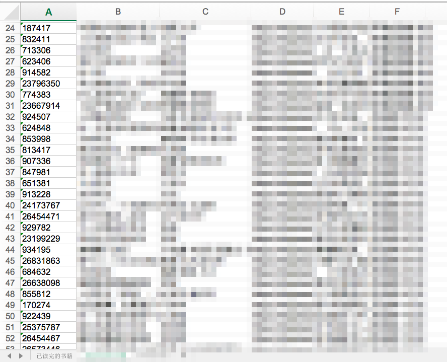 write_excel_xls_append(data_dir + '我的书架.xls', '已读完的书籍', books_finish_read) # 追加写入excel文件