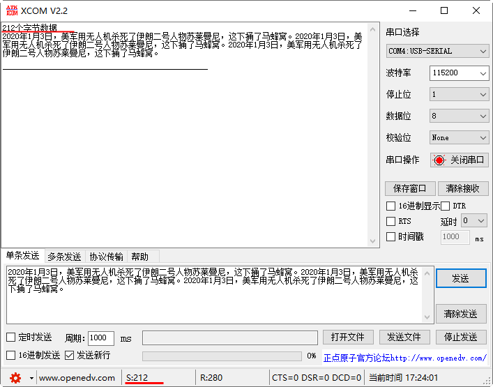 UART1_Printf("个字节数据\r\n"); //发送字符串,末尾换行