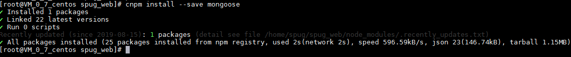 6、安装mongoose,控制台输入cnpm install --save mongoose