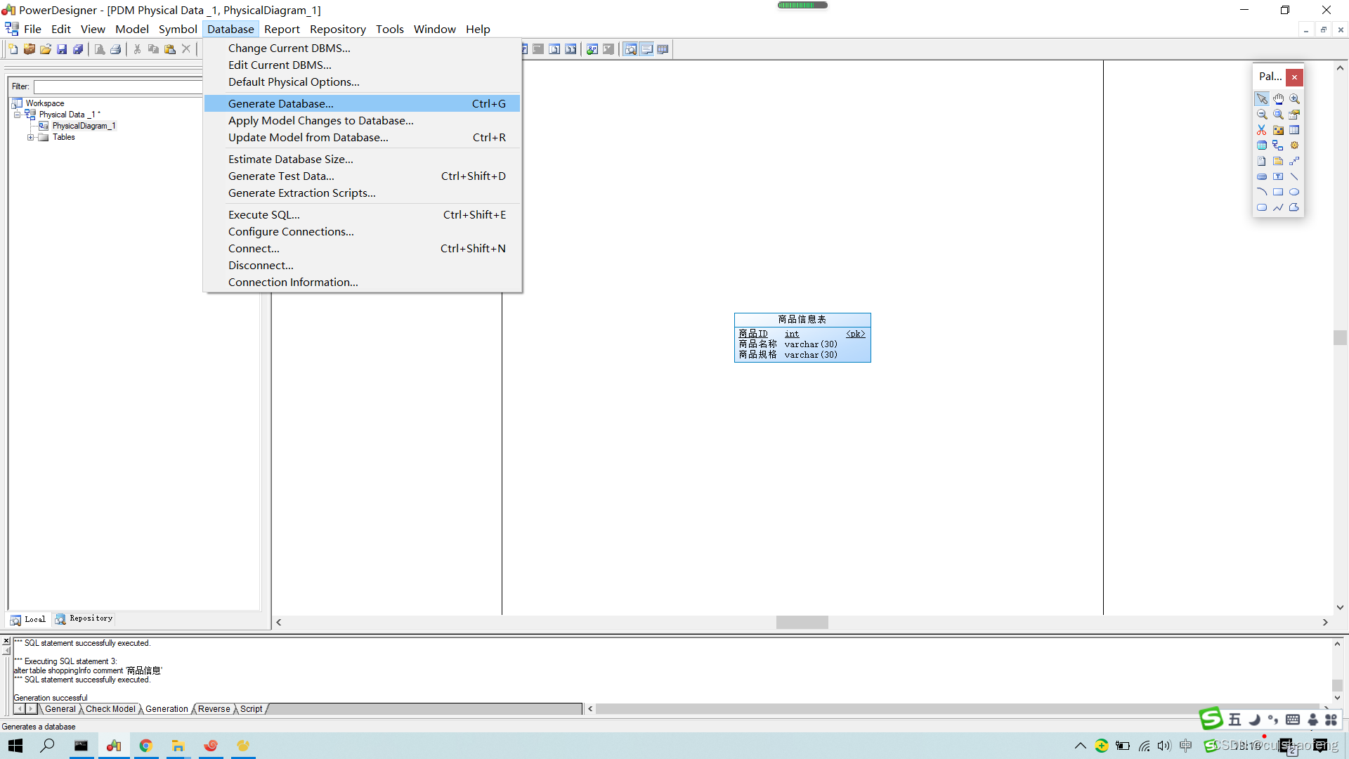 PowerDesigner创建好的表同步到mysql数据库,前置条件:PowerDesigner 连接上数据库,并且己经创建好表。这两个做好之后,就可以将表直接同步到mysql数据库了,如下图所示: