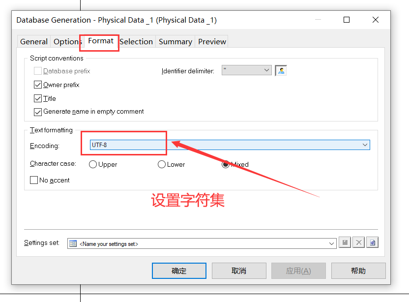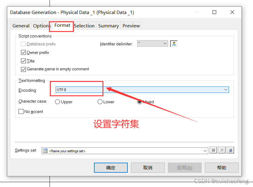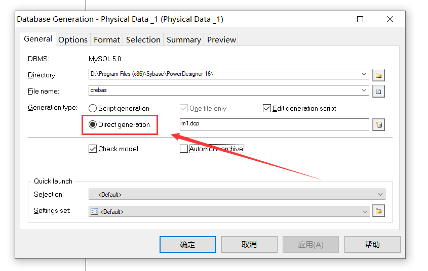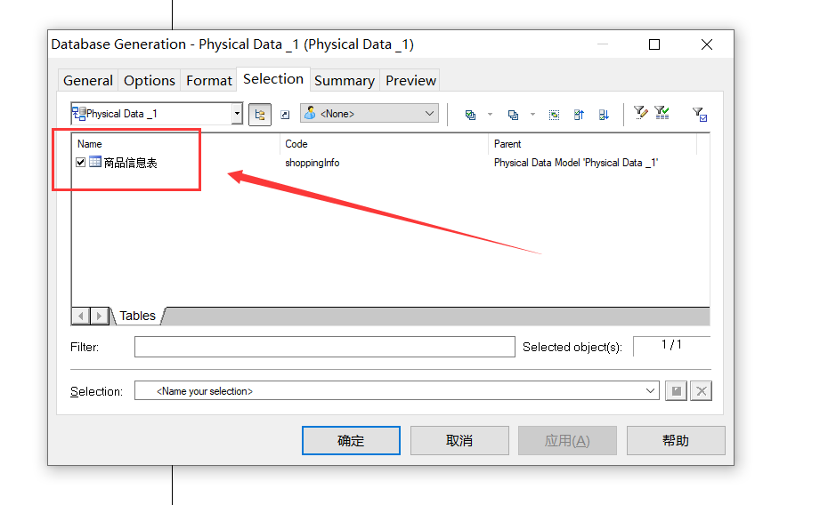 (4)把需要生成的表选中,这样点击确定后就得到了正确的sql语句页面,如下: