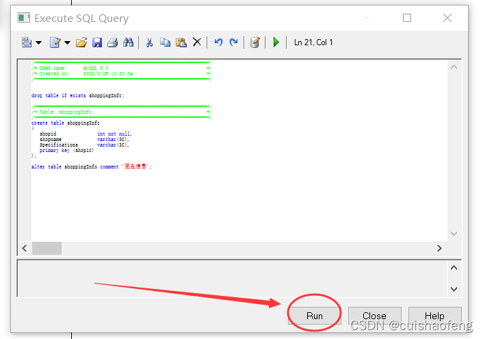 如果你建立模型的时候有空格或者关键字之类的,这里会红字显示,run的时候也会报错,还是很智能的。一般正常的话run一下你的mysql数据库中就出现刚刚建的表了。