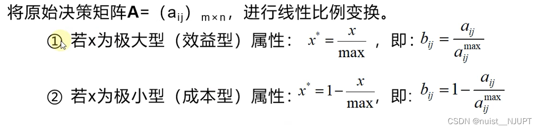线性变换法适用于极大型和极小型的指标,线性变换过程如下所示。