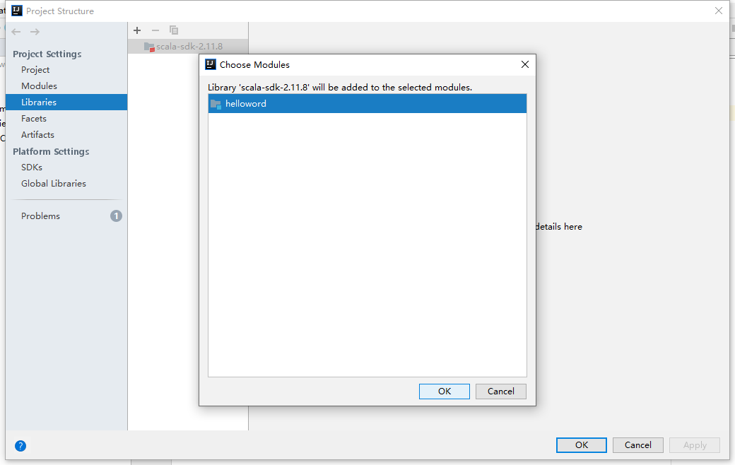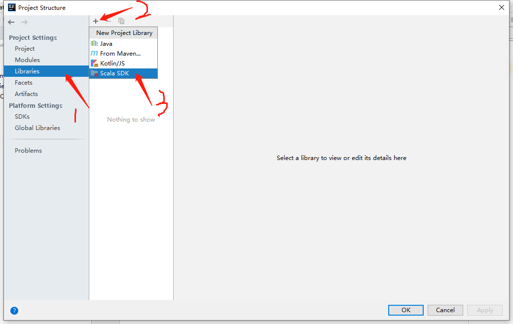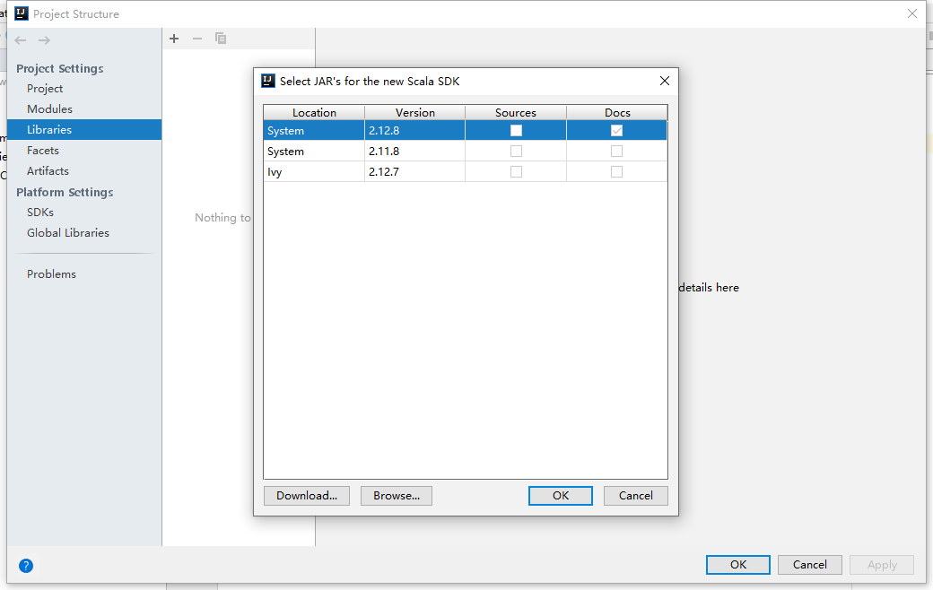 2. 设置Scala SDK:File - Project - Structure - 选择SDK(下载或者选择本地目录)