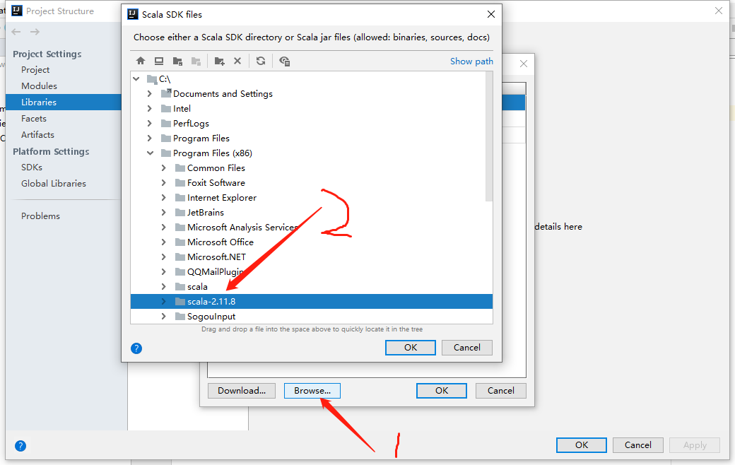 - (2)一般选择从本地已经安装好的Scala:Browser 选中到Scala安装目录。