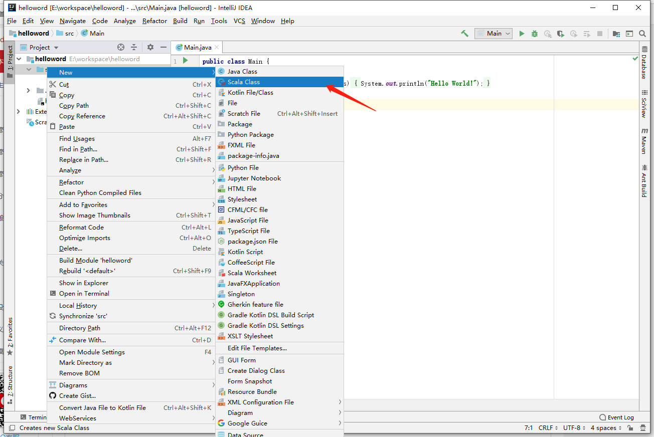 - 可以在根目录创建类,查看Scala是否已经安装成功