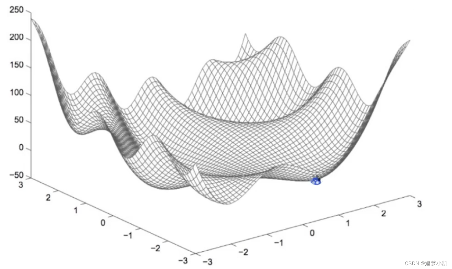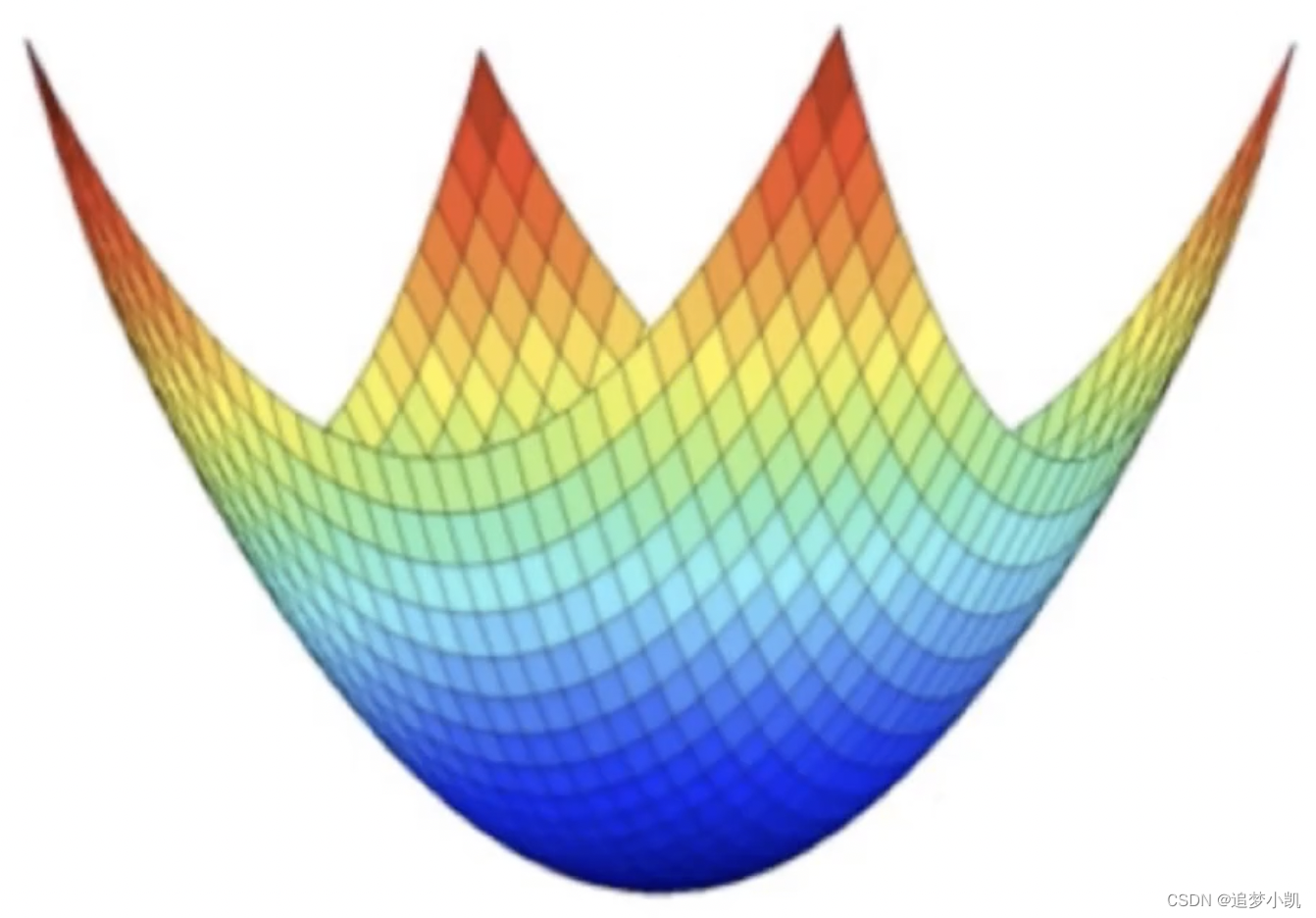 多元的一般函数和凸函数如下图所示,一般的函数拥有全局最优解和局部最优解,而凸函数具有只包含一个最优解的优良性质。则在我们常见的算法中,都尽可能将目标函数转换为凸函数。而一般来说,凹函数和凸函数除符号外无本质区别,本文将具有这类性质的函数统称为凸函数。