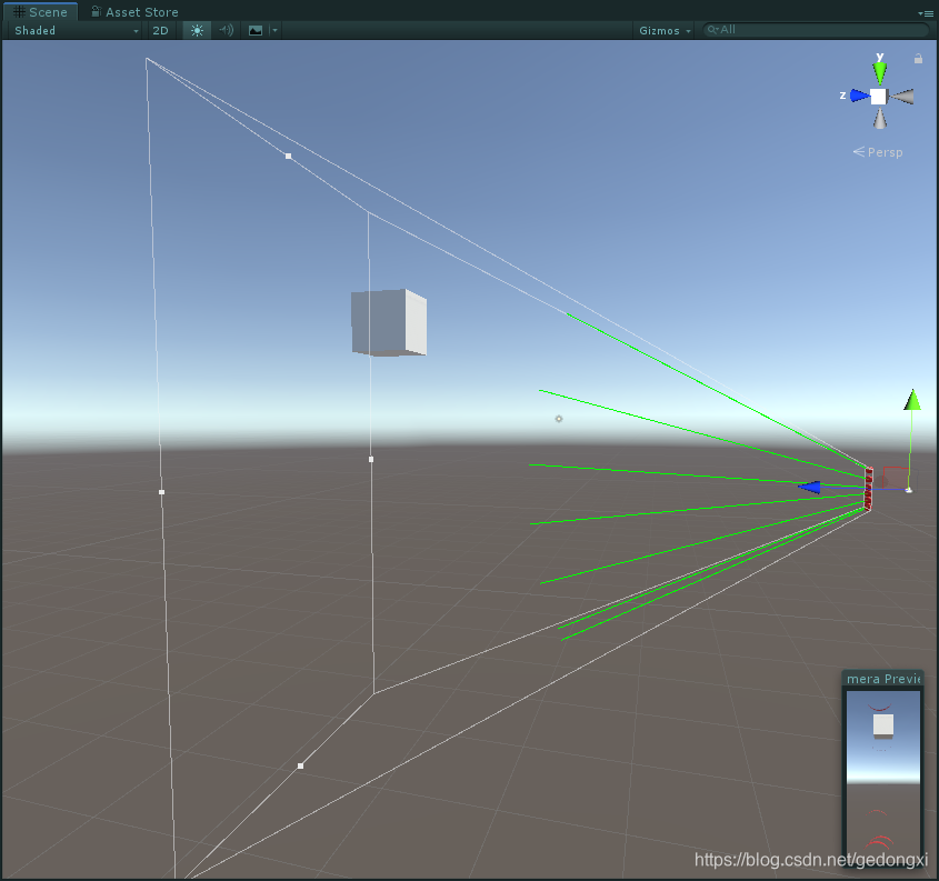 分别是透视摄像机和正交摄像机下的射线样式: