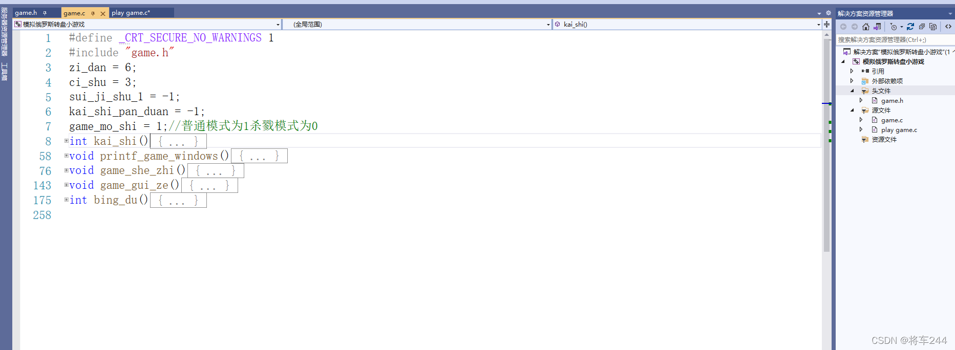 这个文件,同时定义了game.h中的函数和全局变量