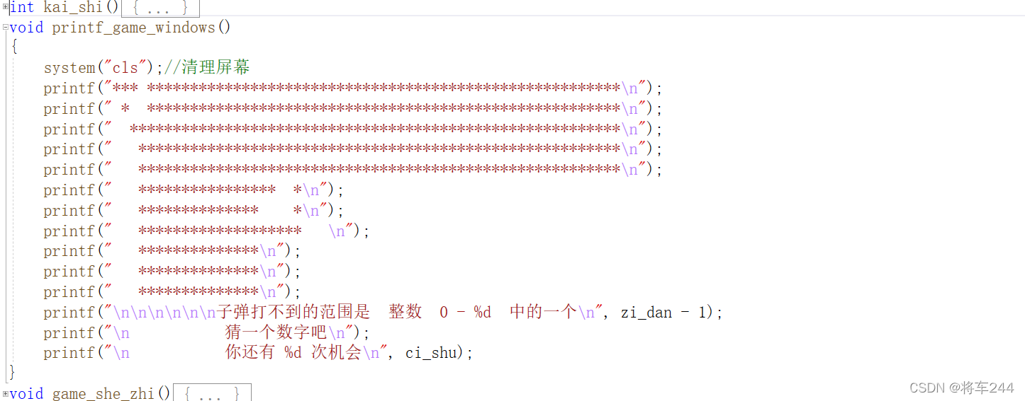 printf("*************** 输入1 - 开始游戏 *************\n");