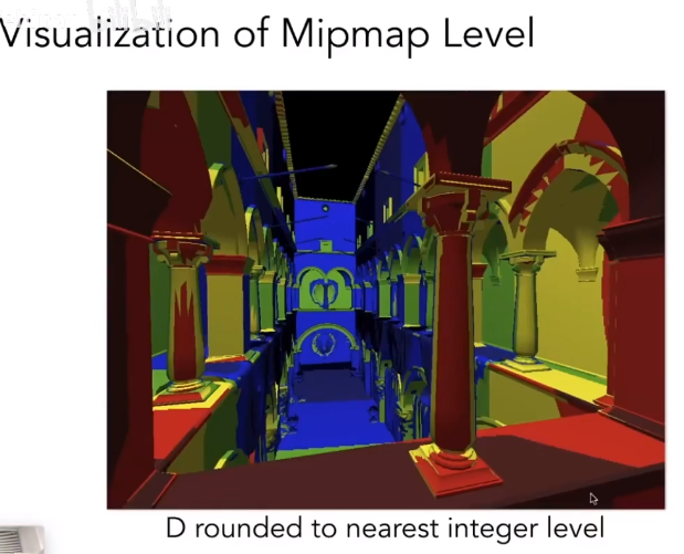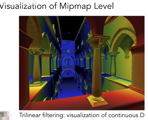 经过插值之后,三维空间中的mipmap等级就变得很平滑了: