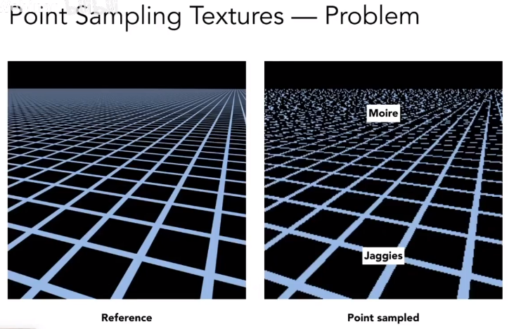 简单来说就是模型精度过高,贴图分辨率过小的问题。这样一来就会出现采样点取到的纹理上的坐标它不是整数:
