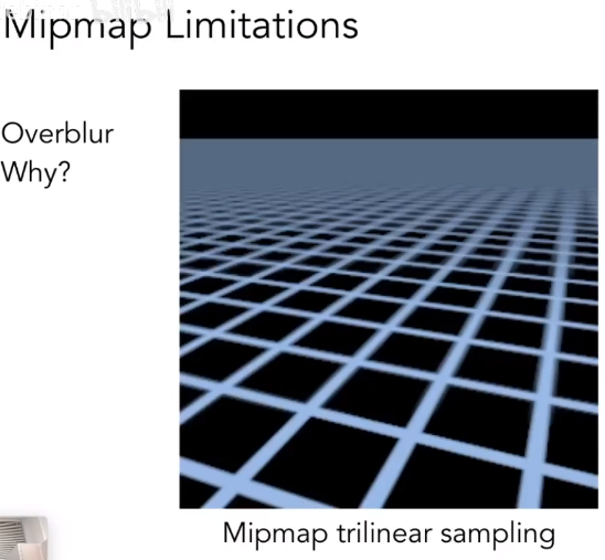 发现效果不太对,远处的变糊了,我们称这种现象叫做Overblur。也就是模糊的过分了。那肯定是mipmap出了问题,问题的一种情况如下:
