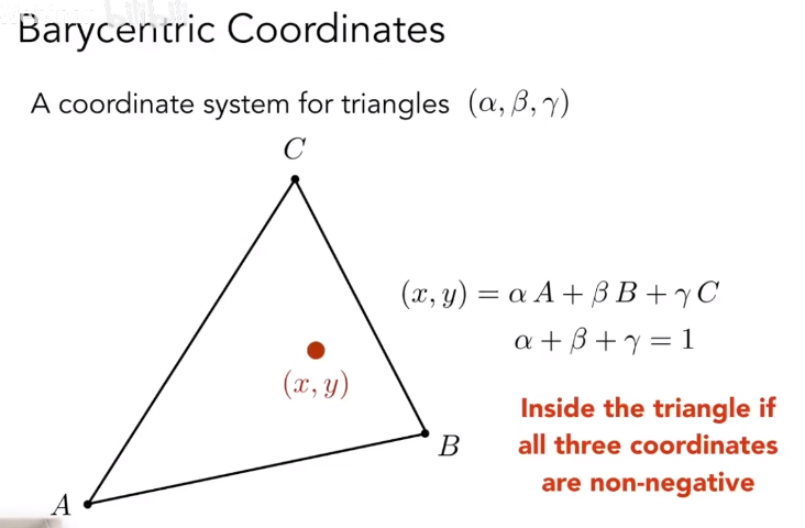 为了做三角形内的插值,需要引入一个概念:重心坐标。