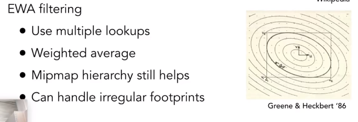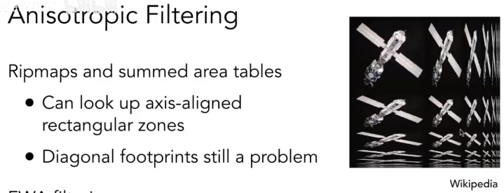 但是各向异性过滤也不是最好的方式,可以从上上张图最左上角的形状看到,就算使用矩形区域去近似,也不是最完美的。
