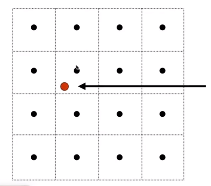 那第一种办法Nearest,就是四舍五入,取临近的一个点的颜色,这样就是上面第一个图的效果,一块一块的颜色都是一样的。