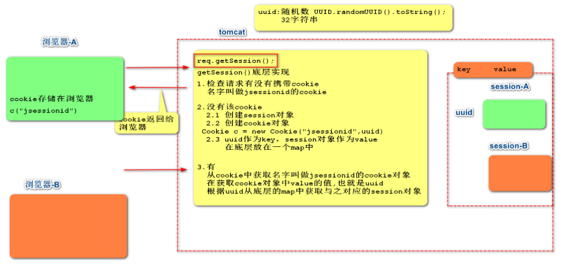 - Session的实现依赖于Cookie的。如图