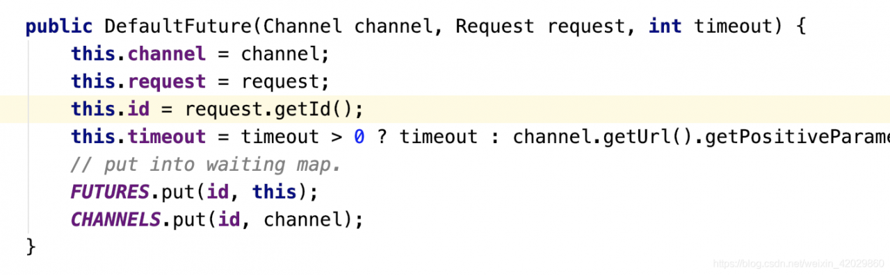 答:在DefaultFuture内部,可以看到一个全局唯一的ID,跟DefaultFuture一同被放在了ConcurrentHashMap中。之后的response通过id找到对应的future,塞入response,唤醒等待线程。