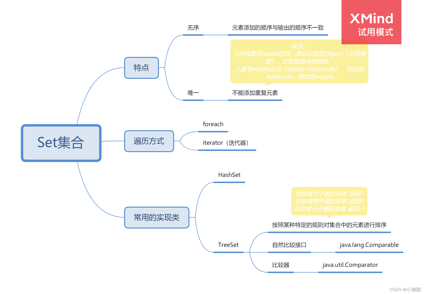 1.1 特点:无序、对象不能重复