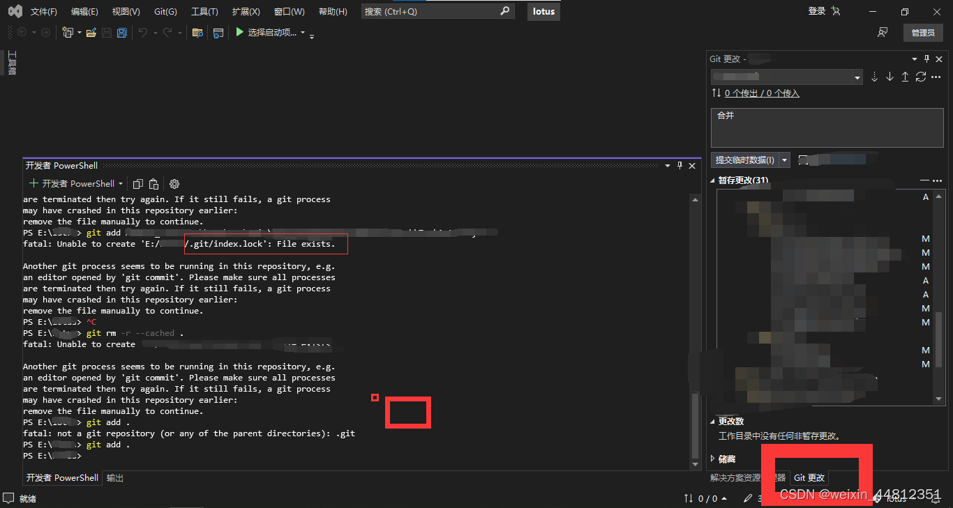用vs作为git的操作的时候,检测不到git更改
