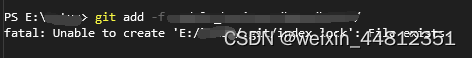 找到该文件目录(例如:C:/../../.git/index.lock)删除index.lock文件
