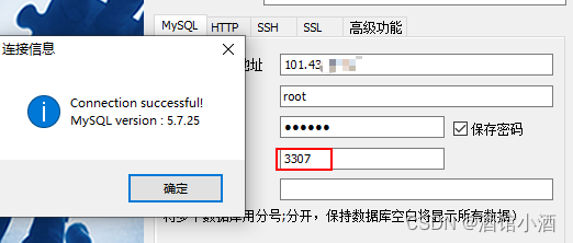 (3)使用连接工具进行连接(端口填3307,映射了容器里的3306,密码是刚才自己设的)