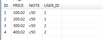 数据库中的数据如下:order表中的外键是user_id