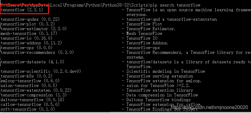 通过pip search tensorflow 搜索一下tensorflow的版本
