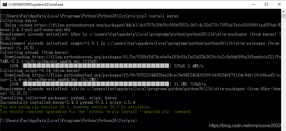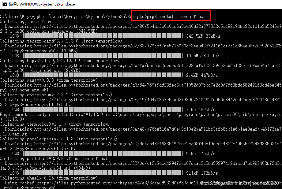 通过命令行运行pip install tensorflow后,安装发生错误,提示如下: