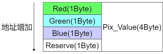 那么关于内存占用的问题,上面的定义方法,定义一个LCD_Pixvalue_S类型的变量占用4个字节。示例图如下