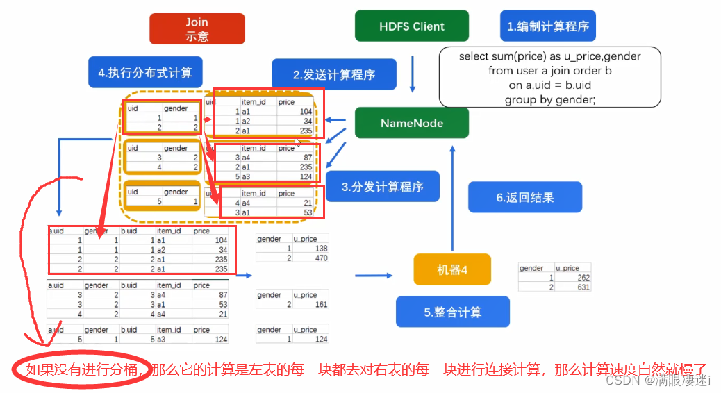 - 如果user和order都以 uid 进行了分桶,那么它以哈希值的计算原理是一样的,所以可以对应桶来进行关联